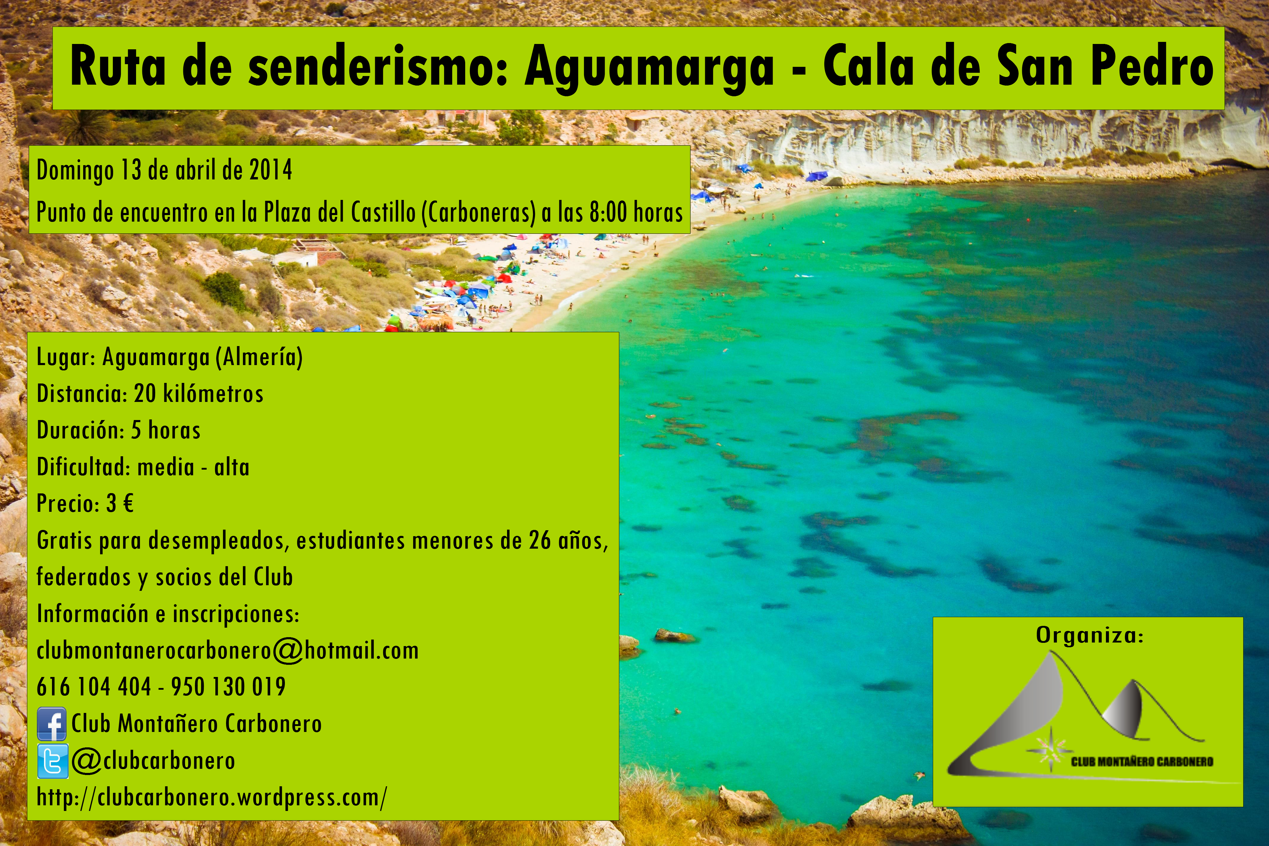 El Club Montañero Carbonero organiza para el domingo día 13 de abril de 2014 la ruta de senderismo Aguamarga – Cala de San Pedro en Aguamarga, que es una pedanía de Níjar (Almería).