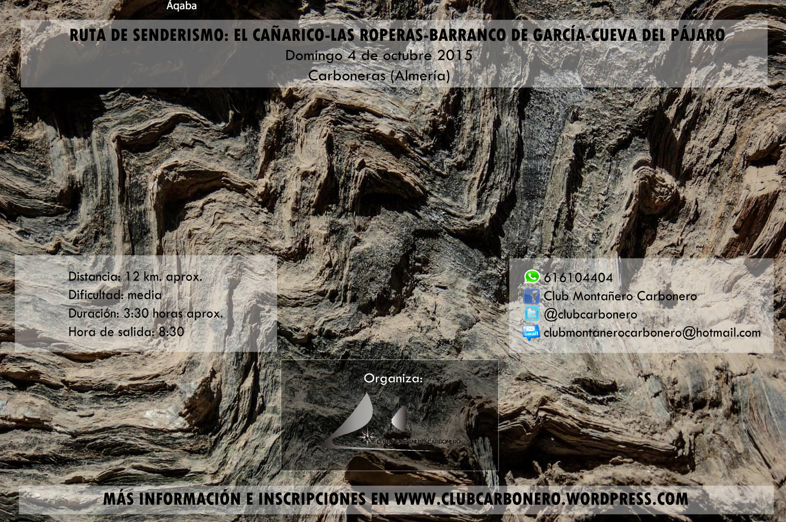 El Club Montañero Carbonero organiza el domingo 4 de octubre de 2015 la ruta de senderismo El Cañarico-Las Roperas-Barranco de García-Cueva del Pájaro.