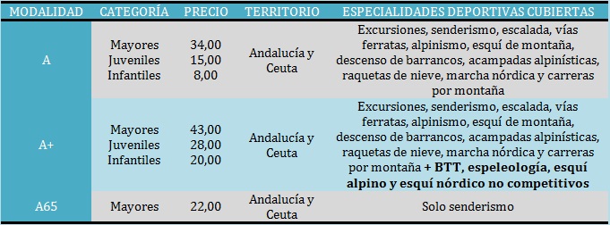 Las licencias federativas tienen un periodo de vigencia de una temporada (también hay modalidades de media temporada), cubren varias disciplinas deportivas y toda la zona geográfica de Andalucía y Ceuta y están disponibles para varias modalidades y categorías (mayores, infantiles y juveniles). Sirven para competiciones y actividades organizadas por cualquiera de los clubes federados a la FAM. Incluso para organizar una ruta por tu cuenta con tus amigos o salir solo a la montaña.