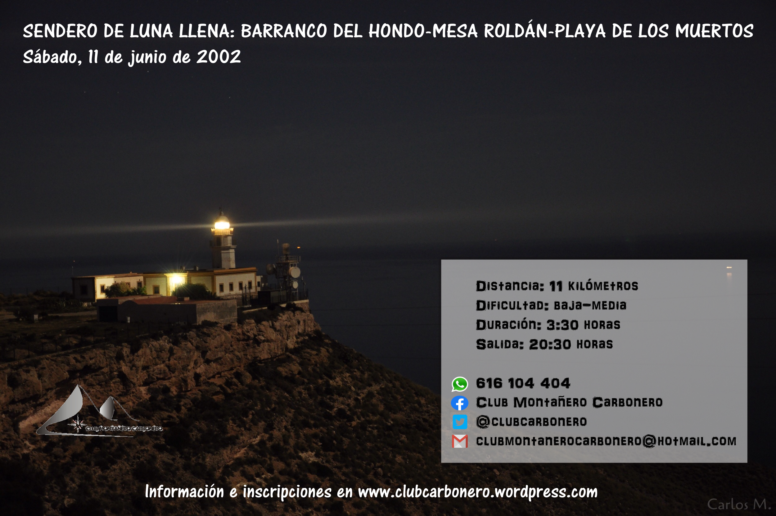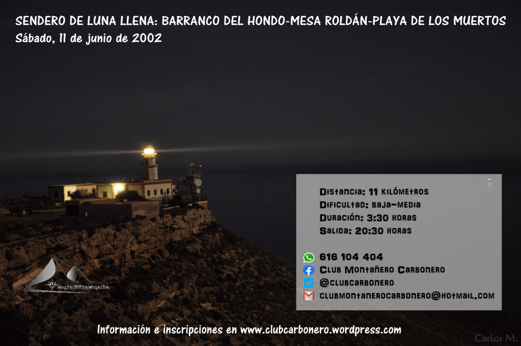 El Club Montañero Carbonero organiza el sábado 11 de junio de 2022 la ruta de senderismo de luna llena Barranco del Hondo-Mesa Roldán-Playa de los Muertos.