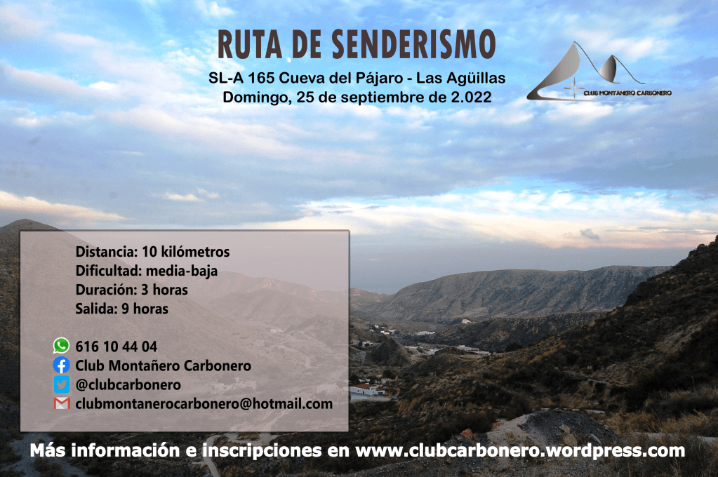 El Club Montañero Carbonero organiza el domingo día 25 de septiembre de 2022 la ruta de senderismo Cueva del Pájaro-Las Agüillas.