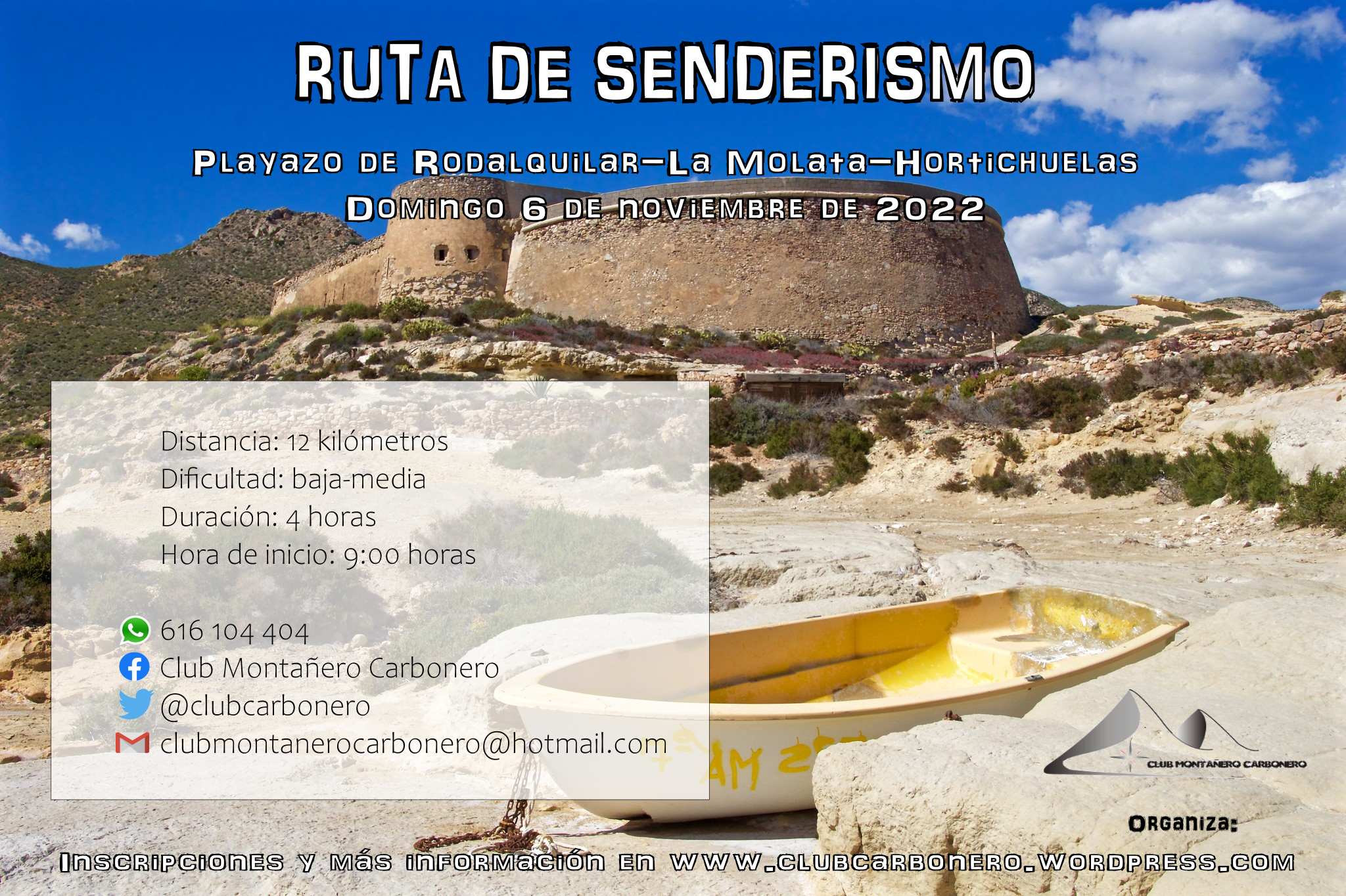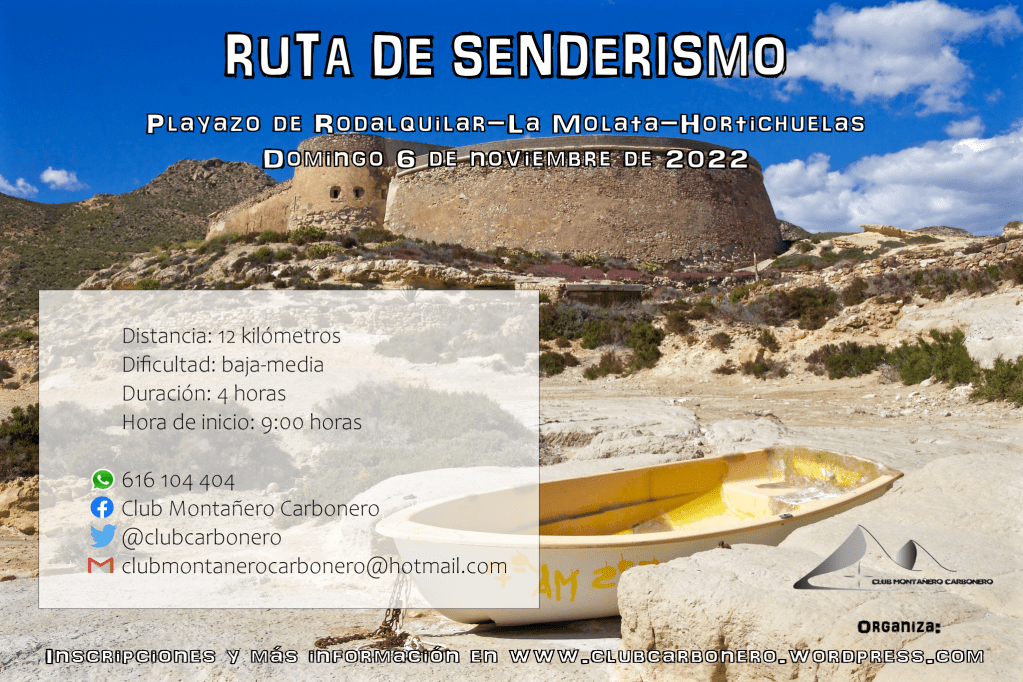 El Club Montañero Carbonero organiza el domingo 6 de noviembre de 2022 la ruta de senderismo Playazo de Rodalquilar-La Molata-Hortichuelas.