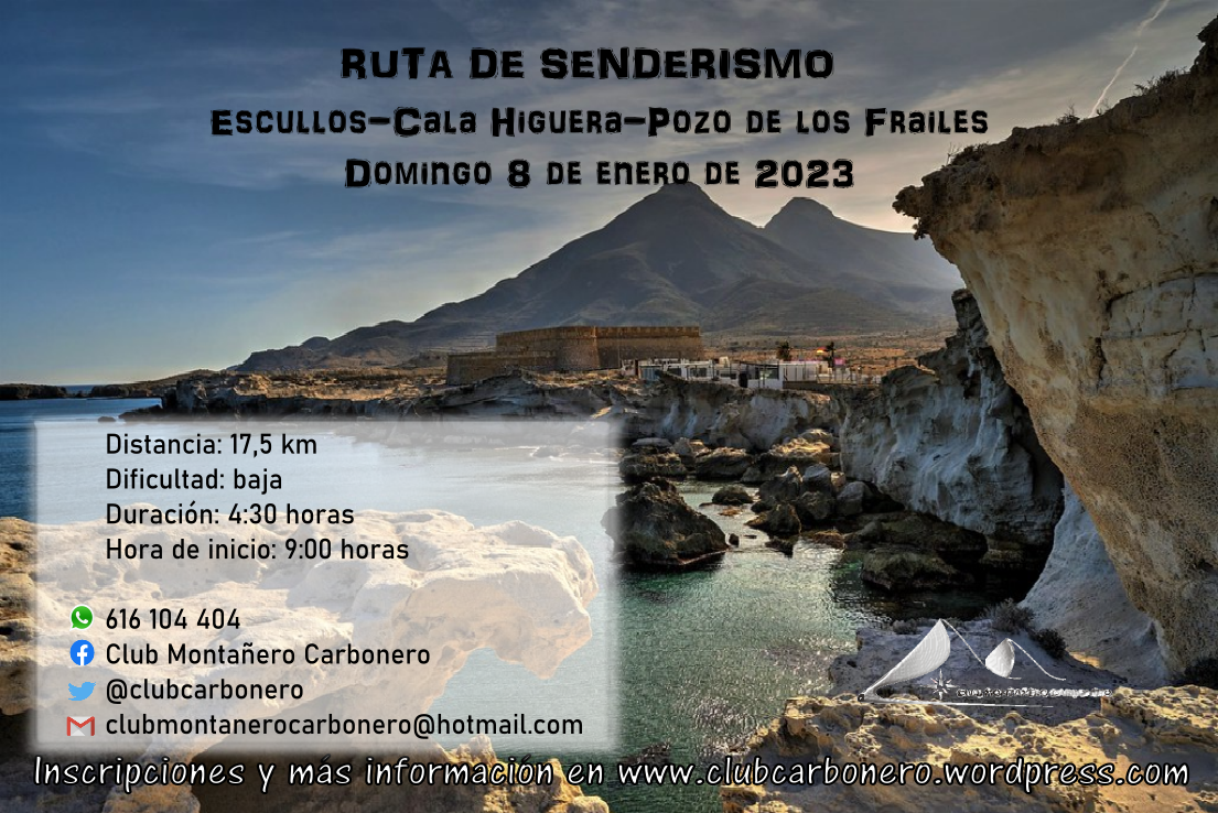 El Club Montañero Carbonero organiza el domingo 8 de enero de 2023 la ruta de senderismo Escullos-Cala Higuera-Pozo de los Frailes.