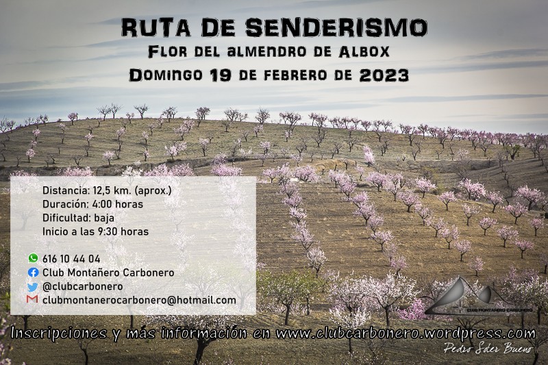 El Club Montañero Carbonero organiza el domingo 19 de febrero de 2023 la ruta de senderismo Flor del Almendro de Albox.
