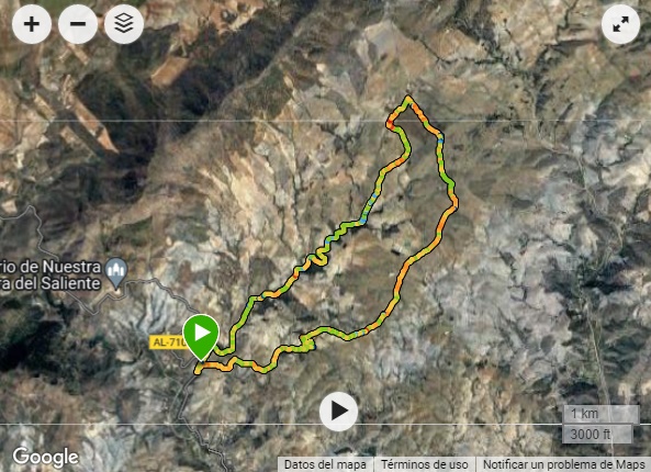 - A las 9:00 horas en Pool & Garden junto a la rotonda «Santuario del Saliente» (Albox, Almería). Desde aquí nos desplazaremos todos juntos hasta el punto de inicio de la ruta. Ver ubicación en Google Maps: clic aquí