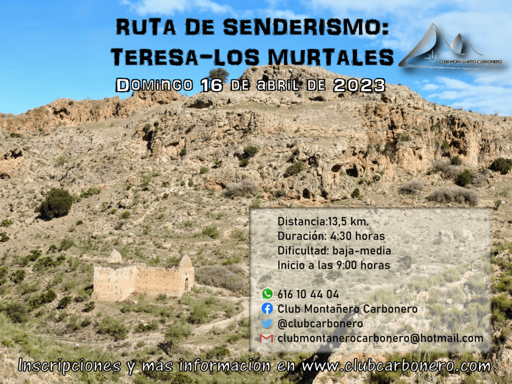 El Club Montañero Carbonero organiza el domingo 16 de abril de 2023 la ruta de senderismo Teresa-Los Murtales.