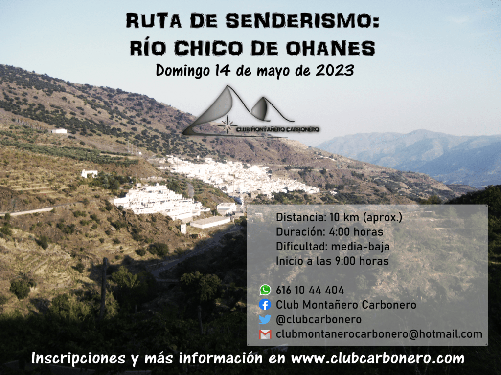 El Club Montañero Carbonero organiza el domingo 14 de mayo de 2023 la ruta de senderismo Río Chico de Ohanes.