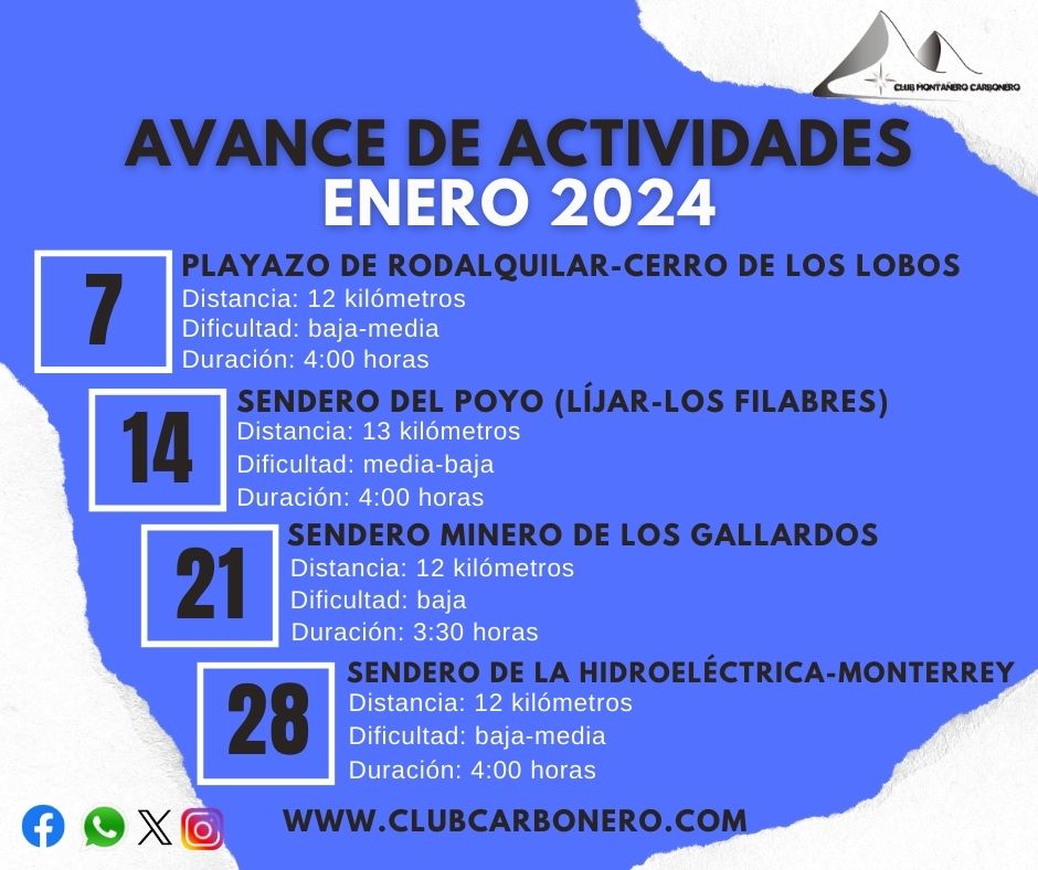 Esta es la programación de rutas del Club Montañero Carbonero para el próximo mes de enero de 2024: