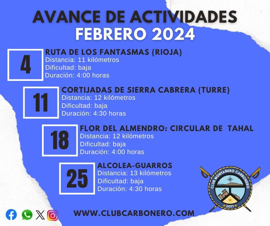 Esta es la programación de rutas del Club Montañero Carbonero para el próximo mes de febrero de 2024: