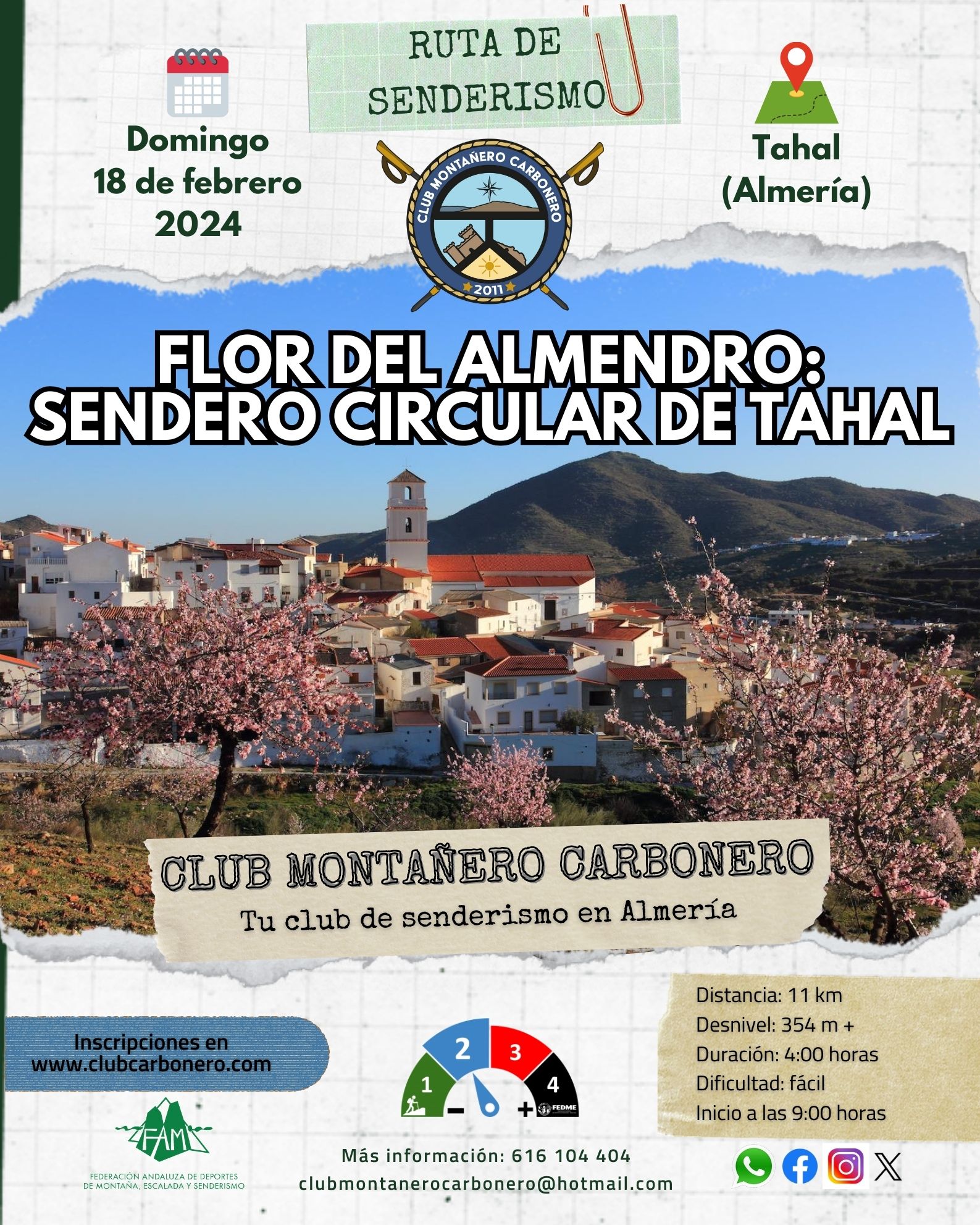 El Club Montañero Carbonero organiza el domingo 18 de febrero de 2024 la ruta de senderismo del Sendero Circular de Tahal.