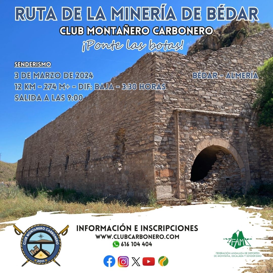 El Club Montañero Carbonero organiza el domingo 3 de marzo de 2024 la Ruta de la Minería de Bédar.
