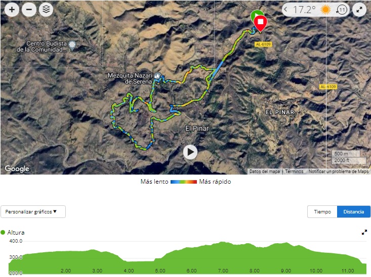 - Tipo de terreno: sendero, pista de tierra y pista de asfalto