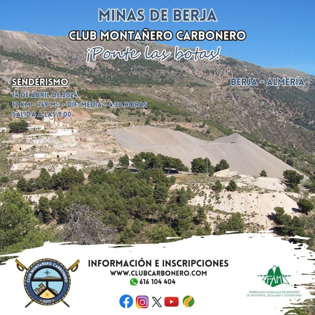 El Club Montañero Carbonero organiza el domingo 14 de abril de 2024 la ruta de senderismo Minas de Berja.