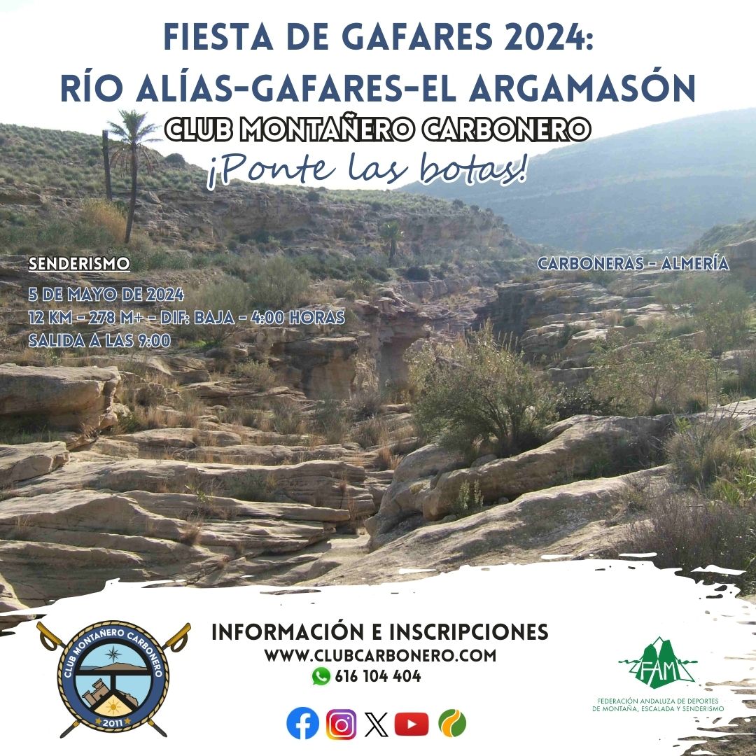 - El pago de la cuota de inscripción se hará mediante transferencia bancaria indicando en el concepto Ruta Gafares + nombres y apellidos del participante en la cuenta corriente del Club Montañero Carbonero: ES59 2100 4885 30 2200045438 (CaixaBank).