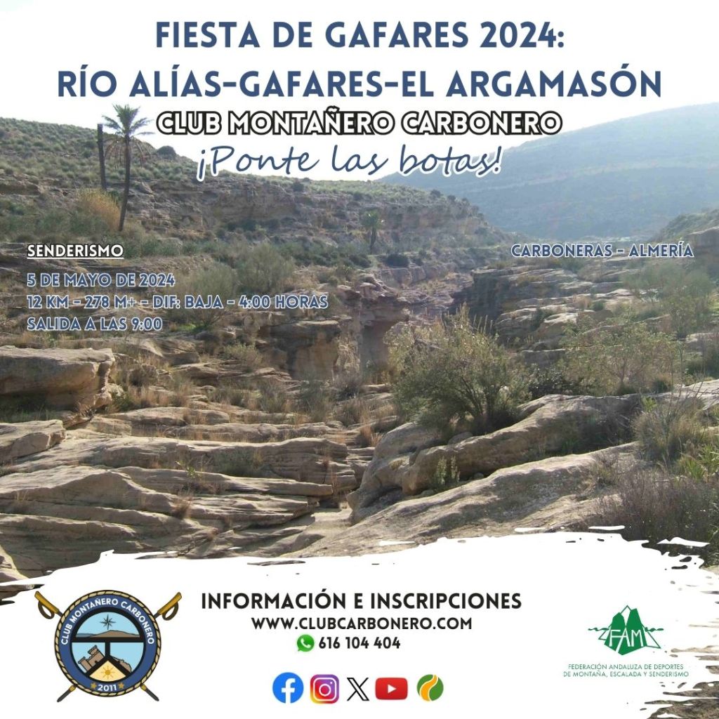El Club Montañero Carbonero organiza el domingo 5 de mayo de 2024 la ruta de senderismo Río Alías-Gafares-El Argamasón.