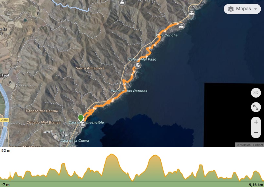 - Punto de salida: Playa canina La Invencible (Villaricos, Almería). Ver ubicación en Google Maps: clic aquí