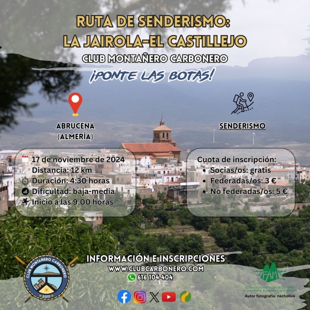 El Club Montañero Carbonero organiza el domingo 17 de noviembre de 2024 la ruta de senderismo La Jairola-El Castillejo.