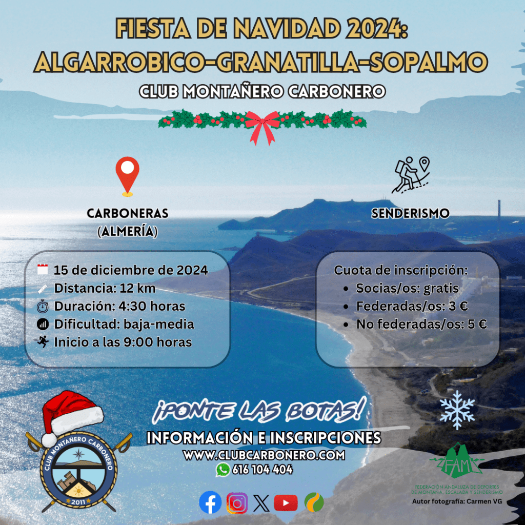 El Club Montañero Carbonero organiza el domingo 15 de diciembre de 2024 la Fiesta de Navidad 2024.