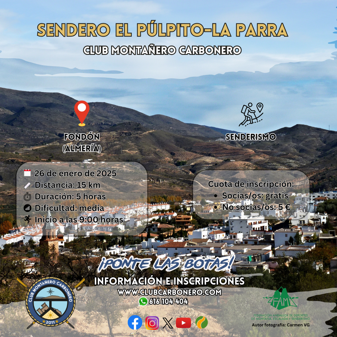 El Club Montañero Carbonero organiza el domingo 26 de enero de 2025 la ruta de senderismo El Púlpito-La Parra.