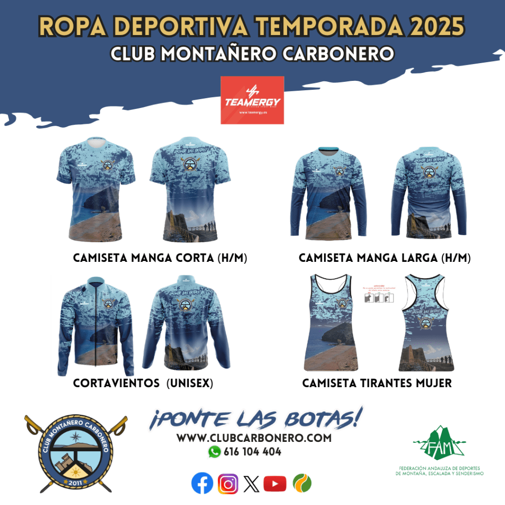 La ropa deportiva del Club Montañero Carbonero ya está disponible para nuestras/os socias/os así como de cualquier persona que desee hacerse con ella y poder llevarla en sus rutas de senderismo. Para que puedas hacerlo con total tranquilidad hemos habilitado un formulario de reserva. Una vez finalizado el plazo de reserva, el próximo (fecha), procederemos a hacer el pedido. En cuanto lo recibamos, os haremos entrega de vuestras prendas en nuestras actividades o podréis retirarlas en nuestro local.