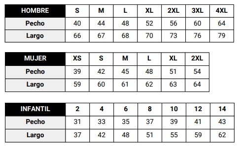 Para la camiseta de manga corta y manga larga: clic aquí