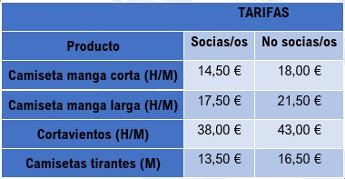 En el formulario podrás indicar tu correo electrónico, nombre completo, si eres o no socia/o, tu patrón (hombre/mujer/infantil), tu talla y el número de prendas elegidas. Procura elegir bien tu talla antes de reservar. Para ello te vamos a facilitar dos guías de tallas: una para la camiseta de manga corta o manga larga y otra para el cortavientos.