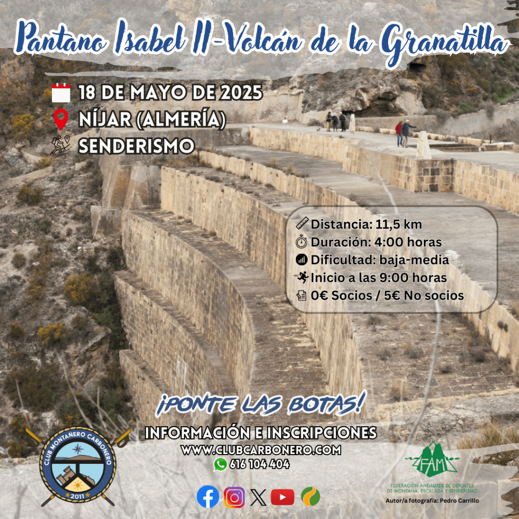 El Club Montañero Carbonero organiza el domingo 18 de mayo de 2025 la ruta de senderismo Pantano de Isabel II-Volcán de la Granatilla.