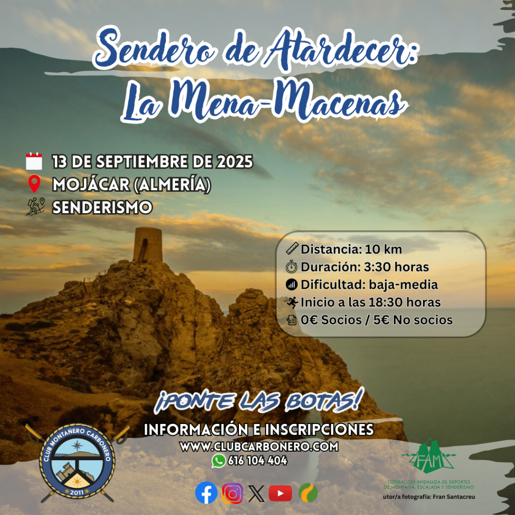 El Club Montañero Carbonero organiza el sábado 13 de septiembre de 2025 el sendero de Atardecer La Mena-Macenas.