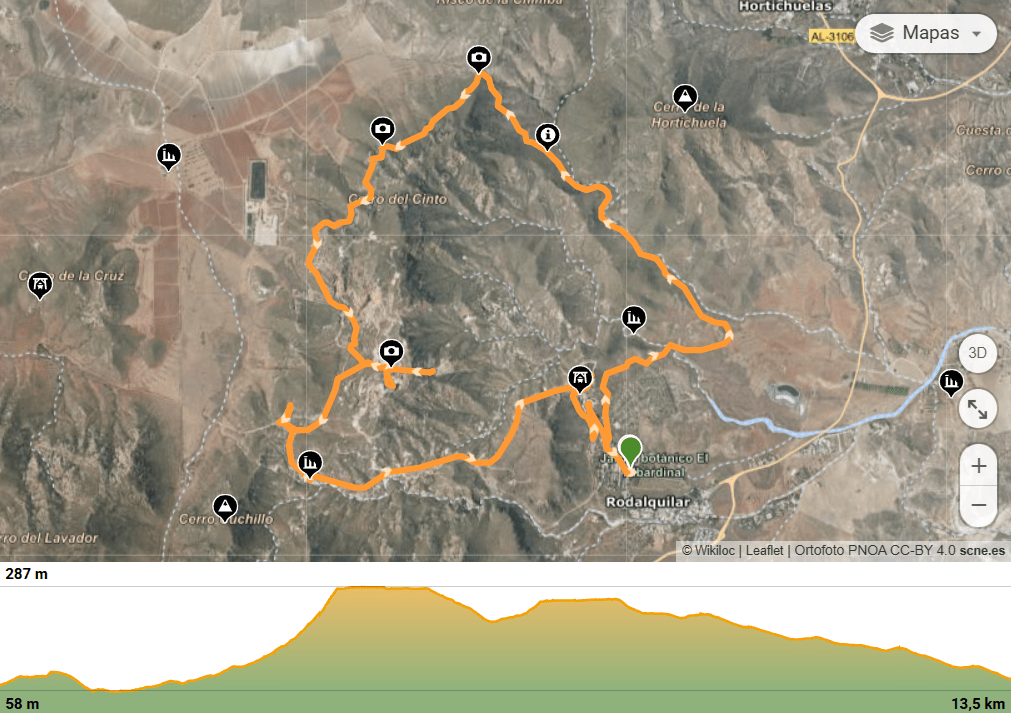Ruta de senderismo que parte del Jardín Botánico El Albardinal para recorrer el sendero del Cerro del Cinto y conocer algunas de las ubicaciones donde tuvo lugar la actividad minera desde finales del siglo XIX hasta mediados del siglo XX en esta pedanía de Níjar que arrastra consigo tanta historia detrás.